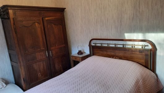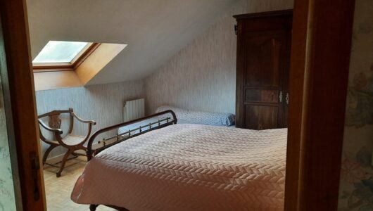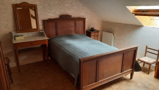1e verdieping. Hier ontwaak je heerlijk met het gezang van vogels en de kabbelende rivier de Dragne. Deze slaapkamer heeft …