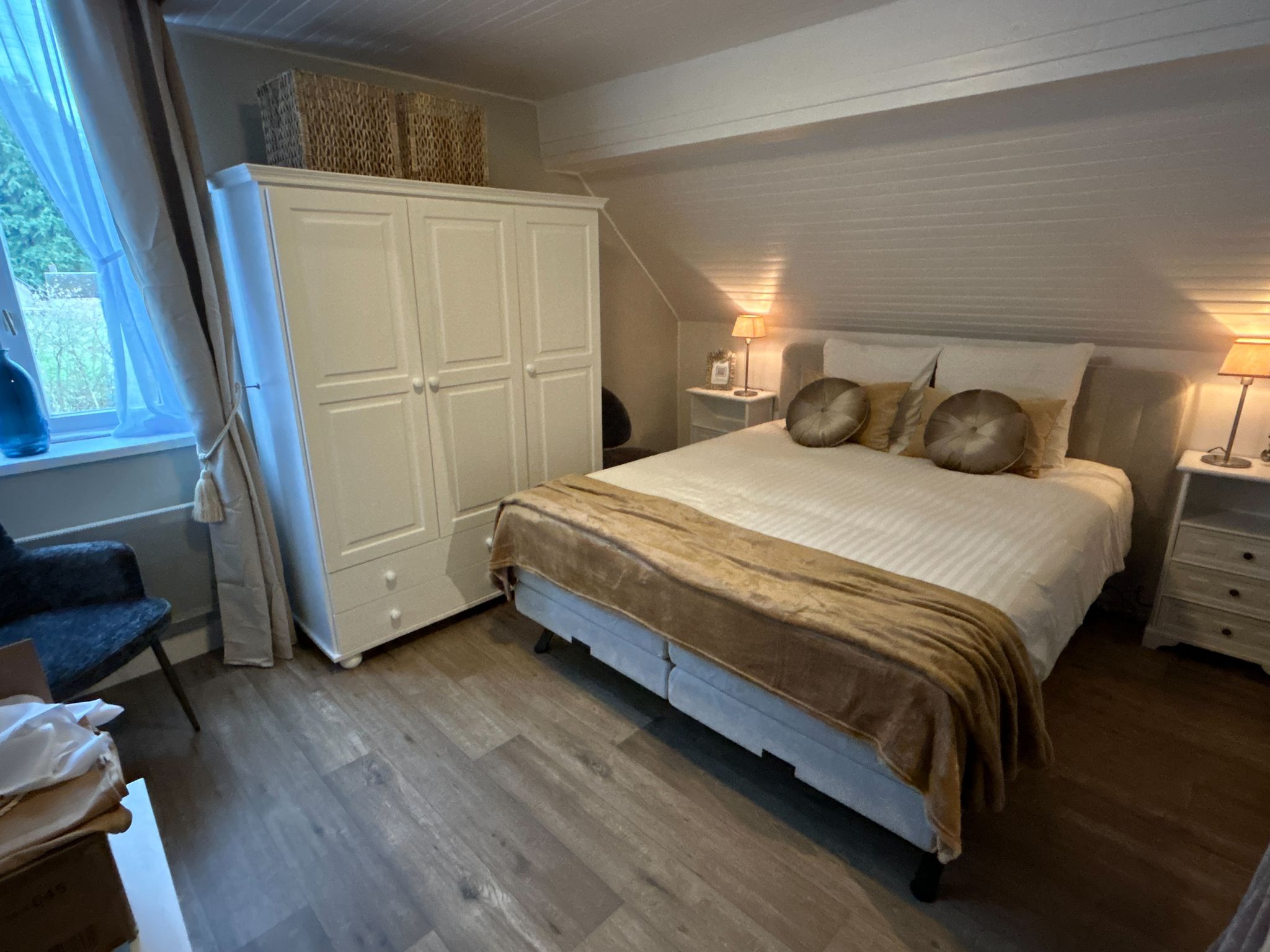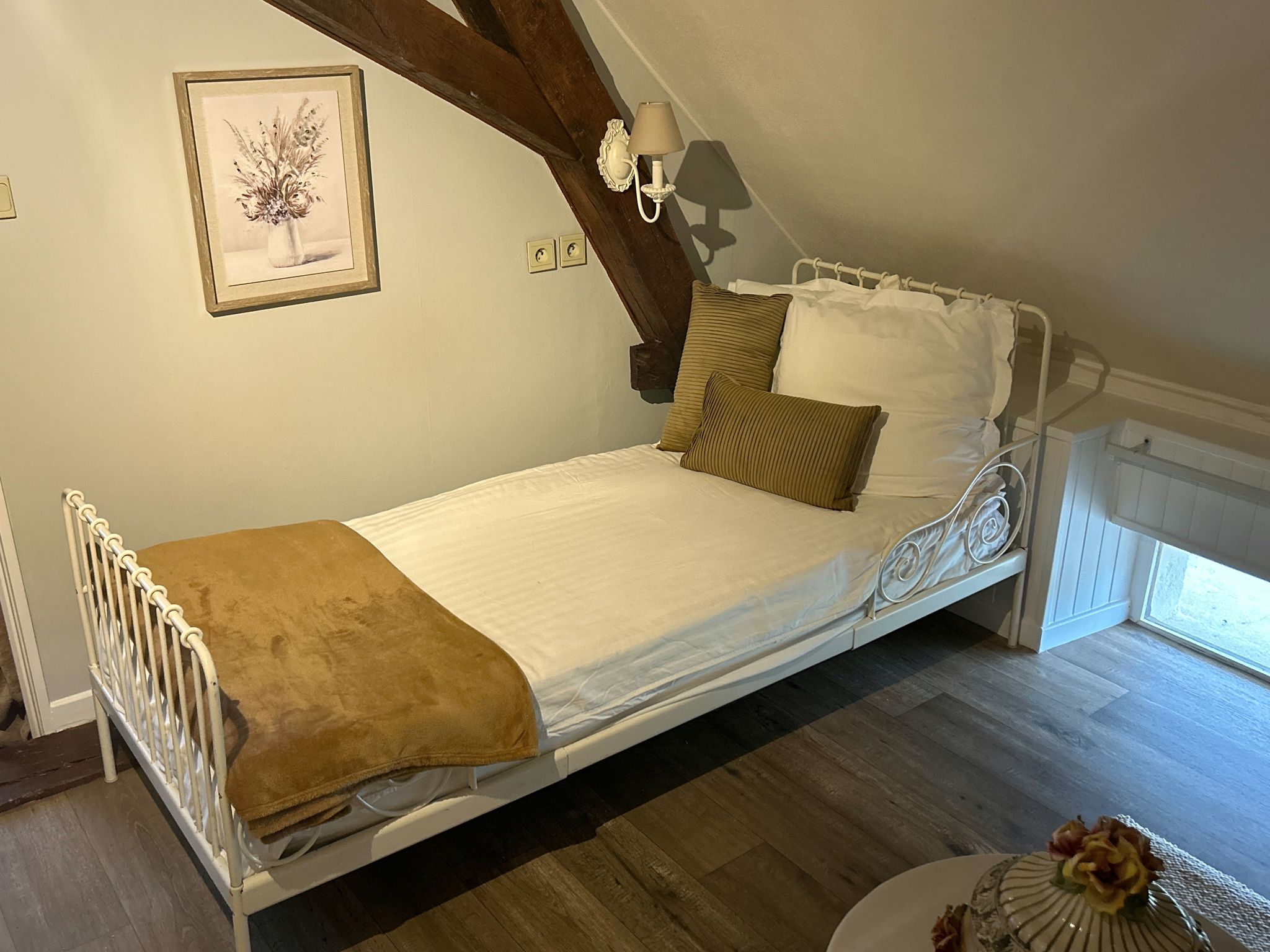 De bedden staan nu tegen elkaar, maar kunnen op verzoek los van elkaar. Ventilator, smart-tv en wifi aanwezig.