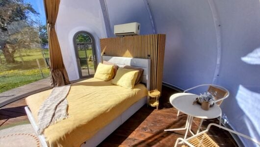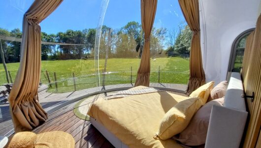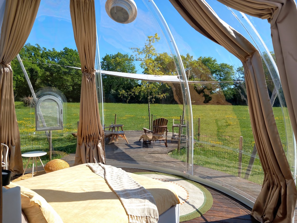 Natuurlijk heeft de Bulle ventilatie en airconditioning. Houd er rekening mee dat het hartje zomer overdag warm kan zijn in de Bulle, ondanks de airco. Zodra het avond wordt zijn de temperaturen in de Bulle gewoon aangenaam. En maak je gebruik van de jacuzzi, of wil je 's ochtends op je gemak het luxe ontbijt op het privé-terras gebruiken, dan hangen er lekkere badjassen klaar.