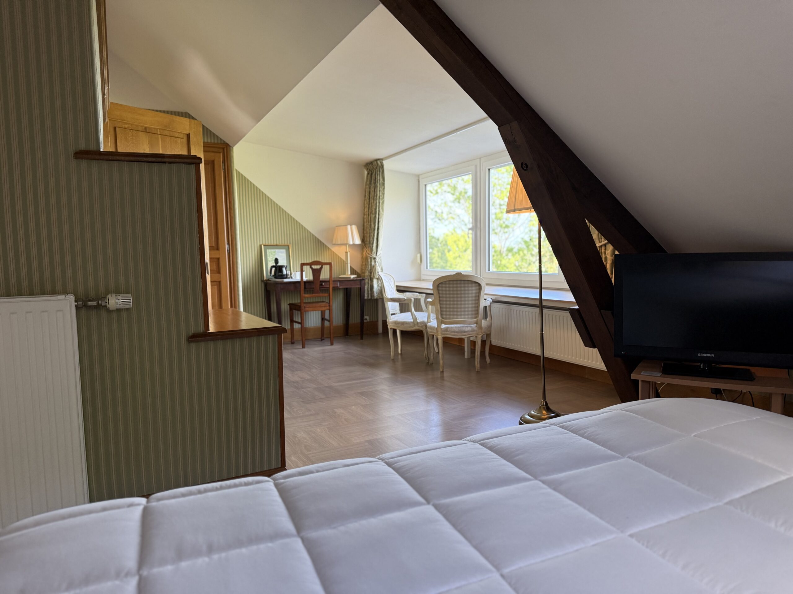 Het grote parc met oude bomen en het wijde uitzicht over de vallei.”Door onze gasten genieten we nog meer van ons huis.”