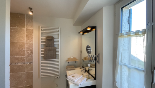 Tweepersoonskamer van 20 m2 met: – Breed bed (1.80m of 2 x 0.90m) – Badkamer met douche à l’italienne, wastafel …