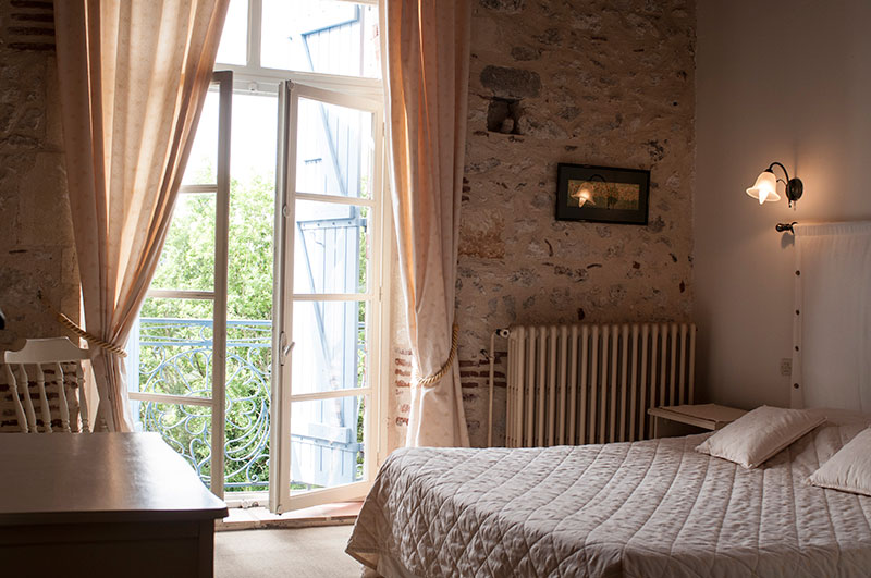 Het centrale punt van Les Huguets is het grote gedeeltelijk overdekte balkon, vanwaar je de rustige uitgestrekte vallei inkijkt, met aan de horizon het middeleeuwse dorpje Penne d’Agenais. Op dit terras kun je ook genieten van een Frans ontbijt of van een heerlijke maaltijd aan het einde van de dag.