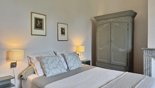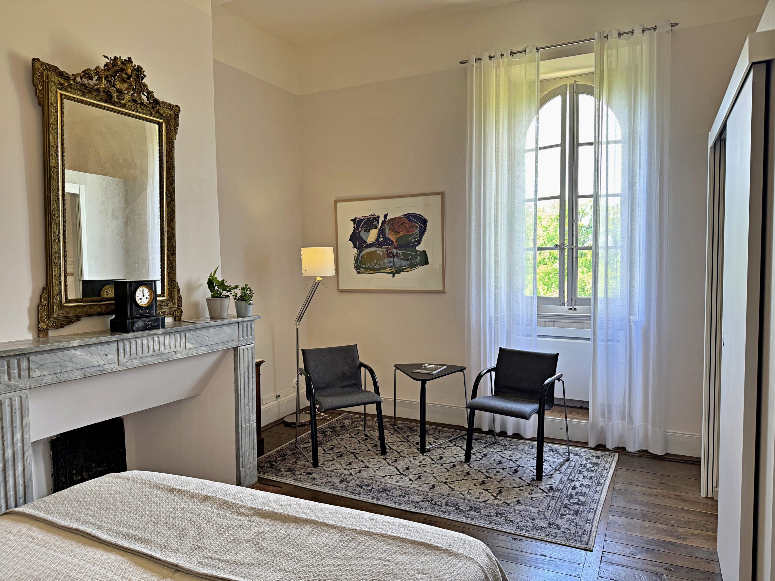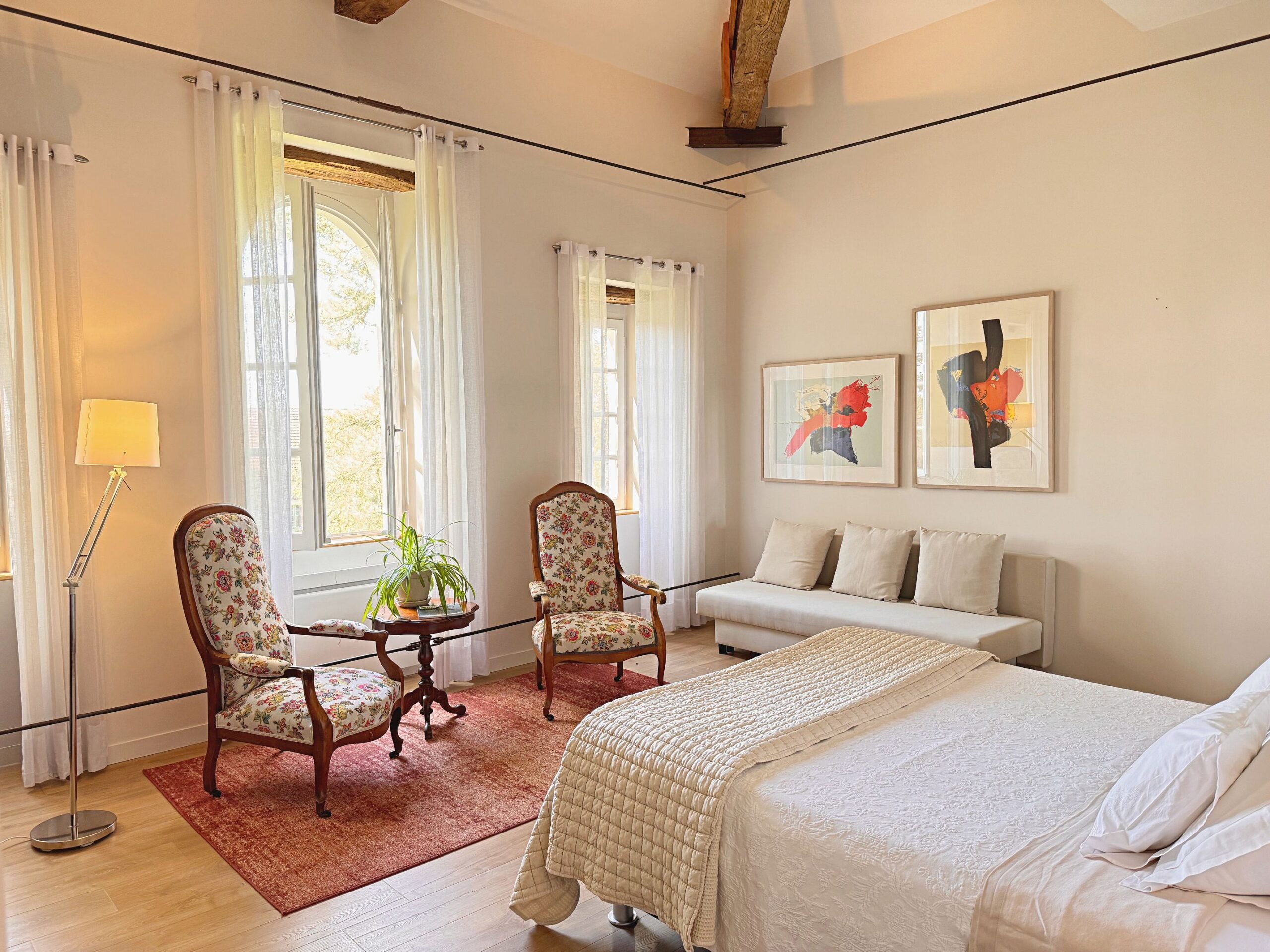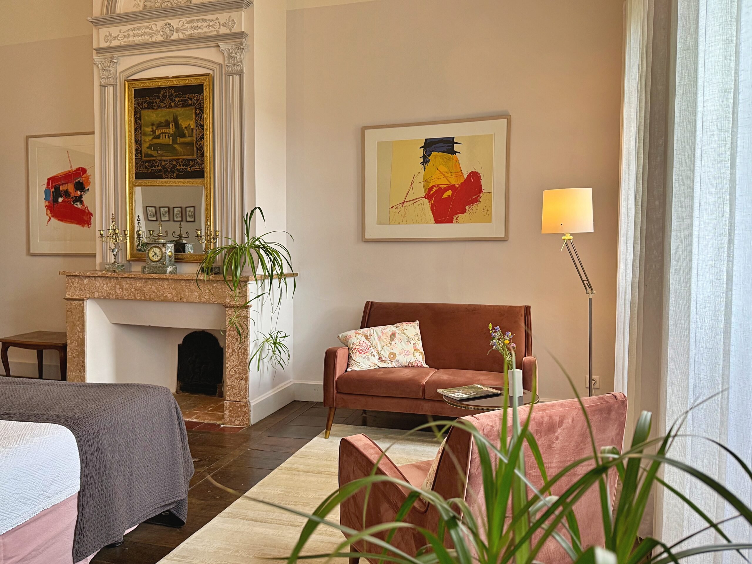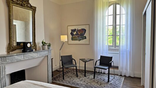 Wat we niet durfden vermoeden is dat alles hier op zijn plek valt. Meubels en kunst, stukken die we soms al dertig jaar hebben, lijken gemaakt voor dit huis. Ook wij voelden ons meteen thuis in de ruime, geborgen vertrekken en op het charmante Franse platteland.