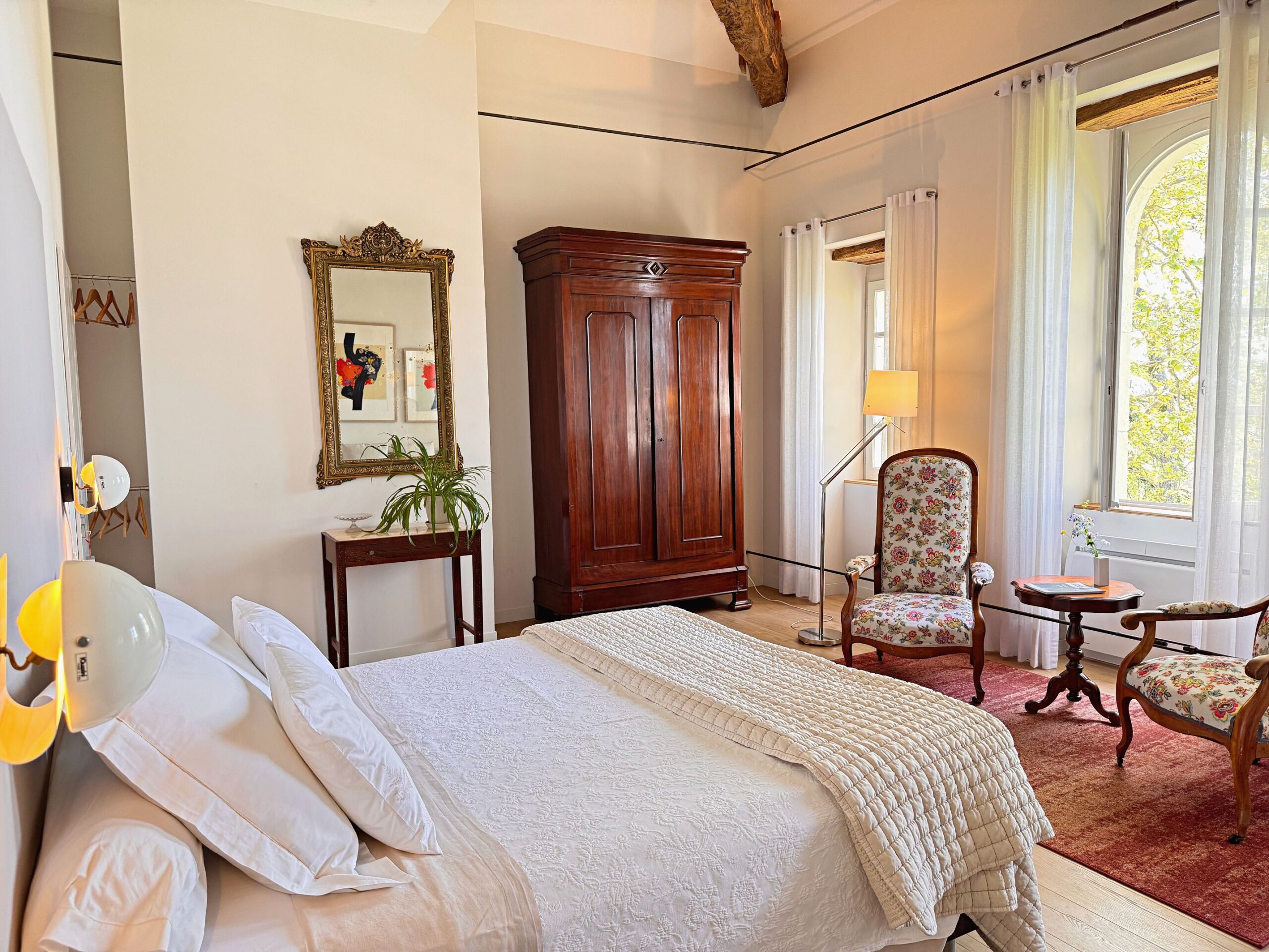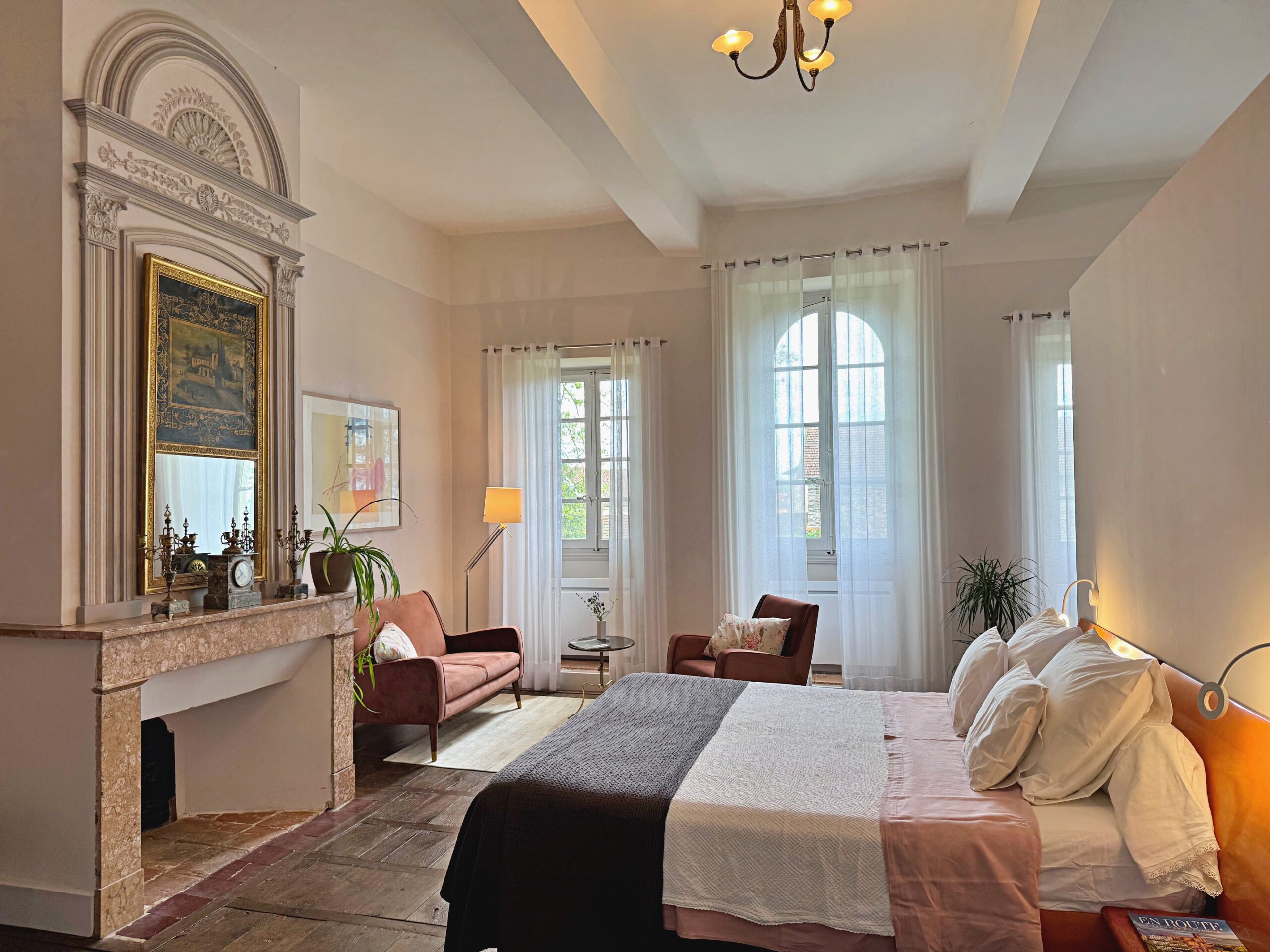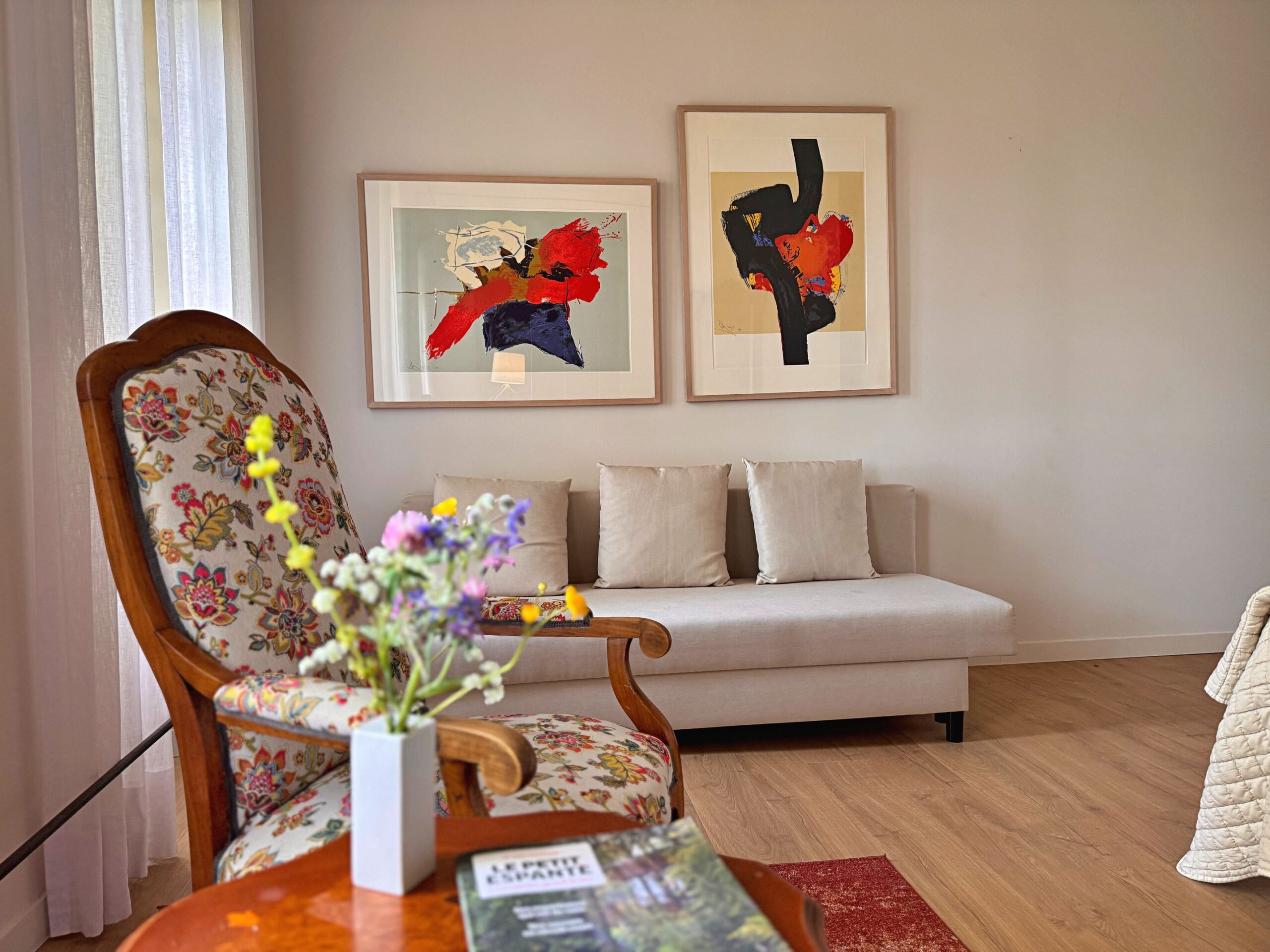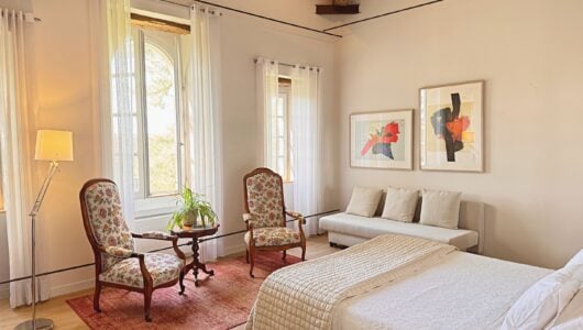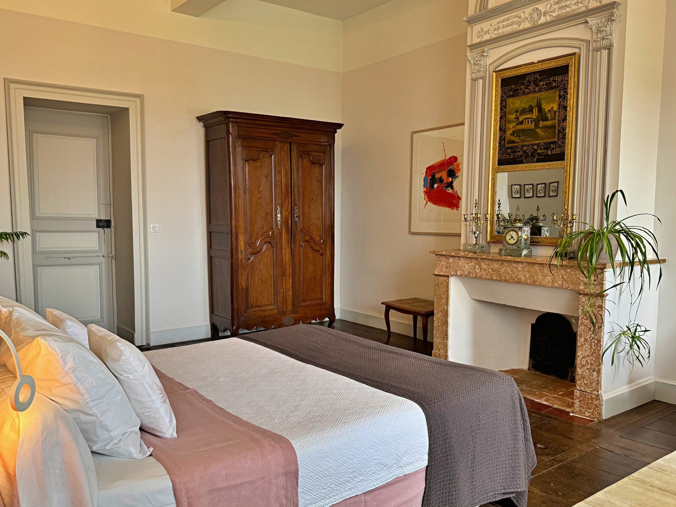 Wat we niet durfden vermoeden is dat alles hier op zijn plek valt. Meubels en kunst, stukken die we soms al dertig jaar hebben, lijken gemaakt voor dit huis. Ook wij voelden ons meteen thuis in de ruime, geborgen vertrekken en op het charmante Franse platteland.