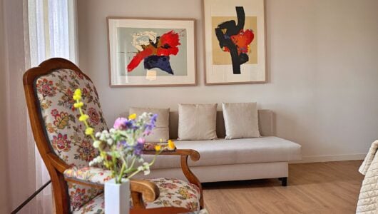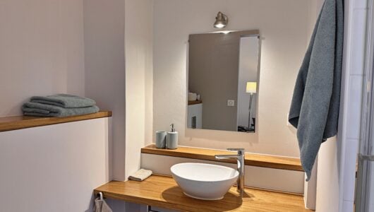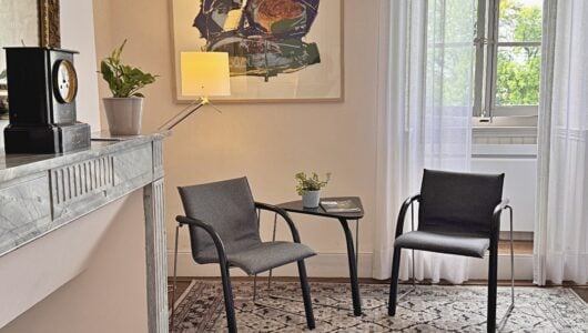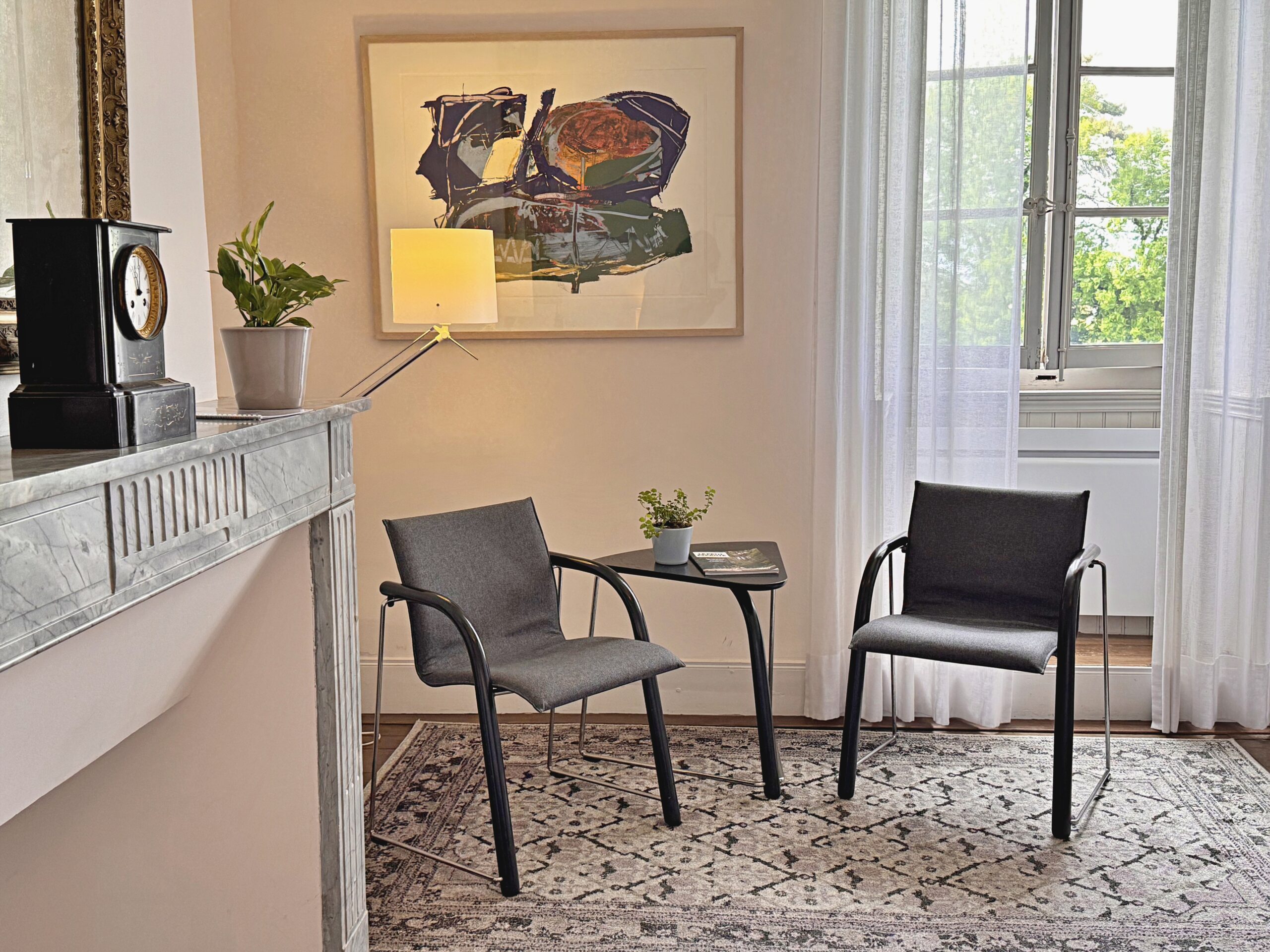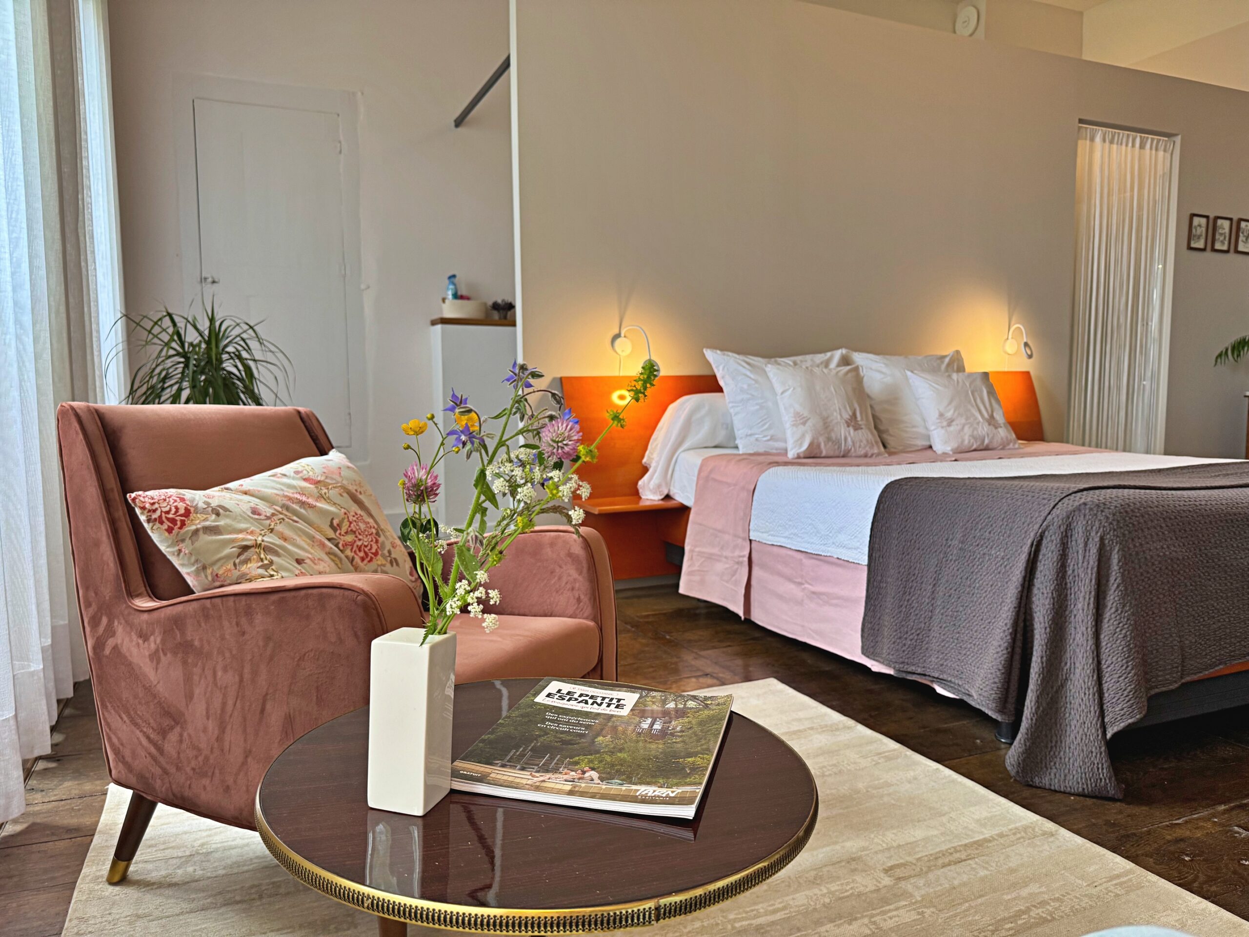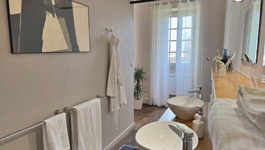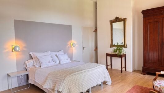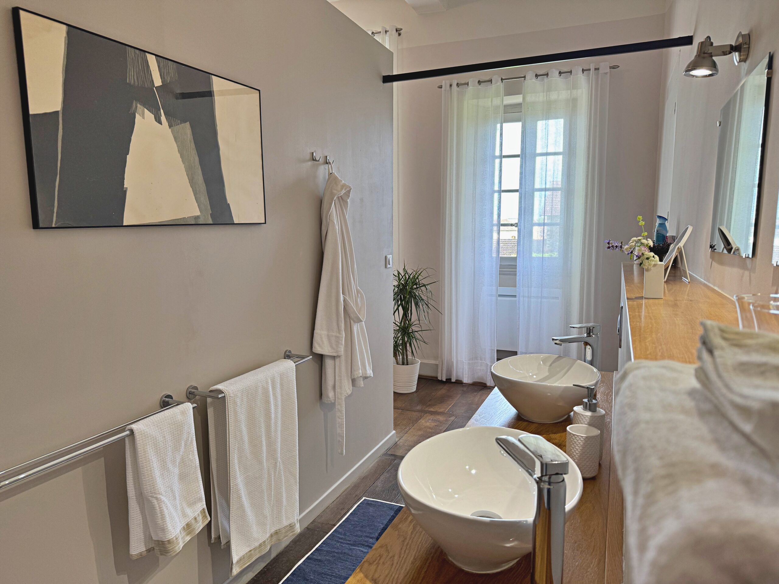 Wat we niet durfden vermoeden is dat alles hier op zijn plek valt. Meubels en kunst, stukken die we soms al dertig jaar hebben, lijken gemaakt voor dit huis. Ook wij voelden ons meteen thuis in de ruime, geborgen vertrekken en op het charmante Franse platteland.