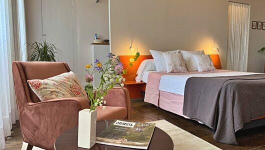 Open de deur van La Surprise en een zee van licht en ruimte treedt je tegemoet. De bloemmotieven en de …