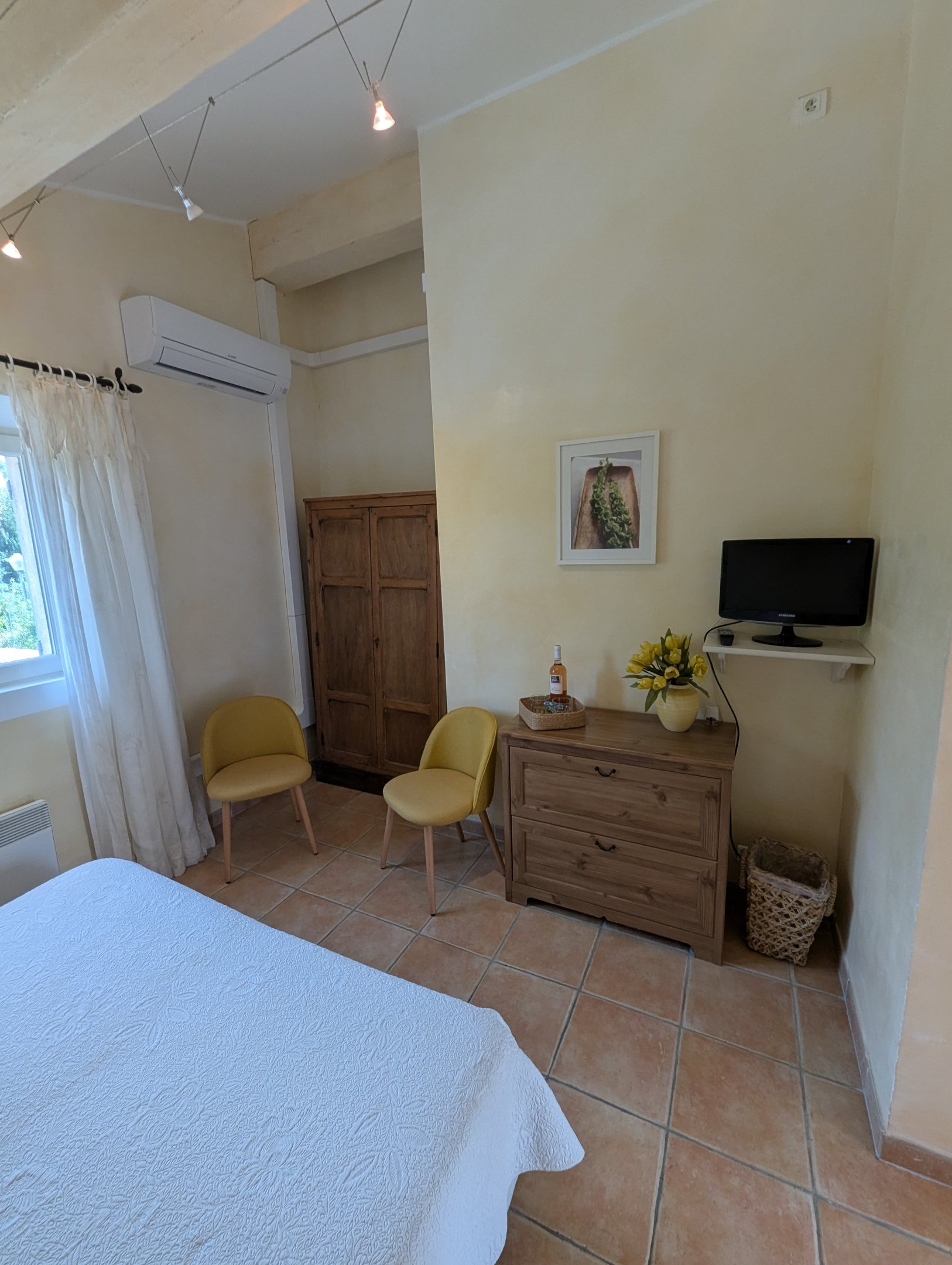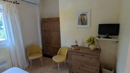 Deze kamer is in moderne Provençaalse stijl ingericht. Behalve in het hoogste seizoen: boek een week en de 7de dag …